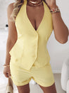 The Velisse Summer Set embodies contemporary polish through clean tailoring and an effortless silhouette. Designed with a sleeveless V-neck vest and tailored shorts, it offers a balance of sophistication and ease — perfect for refined summer days or casual evening gatherings.