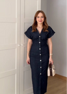 The Arden Heritage Denim Dress blends refined tailoring with effortless comfort. Crafted from soft denim with light stretch, it features a flattering V-neckline, side zipper, and natural waist that enhance the silhouette while allowing ease of movement.